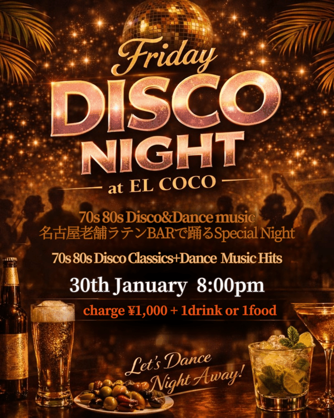70s & 80s ディスコクラシックスとダンスヒッツで、踊っても、飲んでも、語っても最高な夜を。
